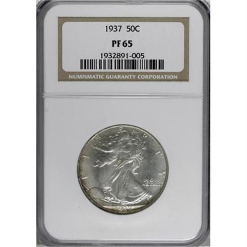<B>1937 50C PR65 NGC.</B></I> The glassy fields display a typical, thin layer of milky patina on both sides, with a slight degree of russet color noted near the obverse border. An appealing and well preserved Gem proof, with fully struck design elements. <BR><BR><B>Coin Engraver:</B> Adolph A. Weinman<BR><BR><b>Shipping:</b> Coins & Currency (<a target="_blank" href="http://www.heritageauctions.com/common/shipping.php">view shipping information</a>)
