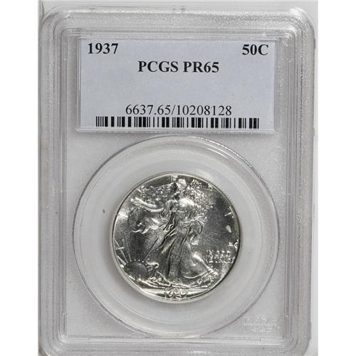 <B>1937<50C> PR65 PCGS.</B></I> Largely brilliant with a spot of milky toning between the T and Y of LIBERTY. Well-detailed and attractive with gleaming, problem-free surfaces.