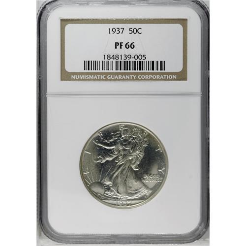 <B>1937<50C> PR66 NGC.</B></I> Powerfully impressed with luminous, essentially untoned surfaces. There are no serious marks to report.