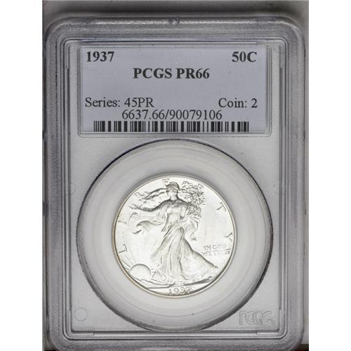 <B>1937<50C> PR66 PCGS.</B></I> A barely discernible veil of powder-blue and beige patina rests on impeccably preserved, bright surfaces. The motifs are crisply struck throughout.