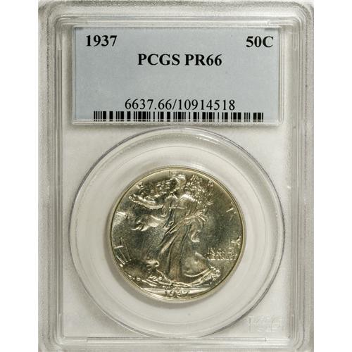 <B>1937 50C PR66 PCGS.</B></I> Slight haze that thickens to the right of the eagle's wings covers much of the coin, though this scarcely dims the reflectivity. A crisply struck and well-preserved specimen.<BR><BR><b>Shipping:</b> Coin/Currency (<a target="_blank" href="http://www.heritageauctions.com/common/shipping.php">view shipping information</a>)