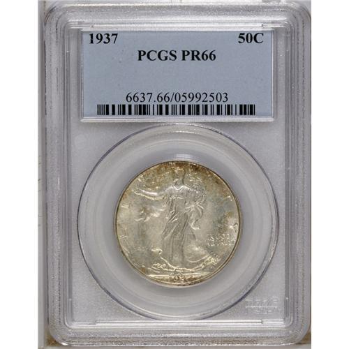 <B>1937 50C PR66 PCGS.</B></I> Speckles of olive-gold make occasional visits to bright proof surfaces. Sharply struck and well preserved.<BR><BR><b>Shipping:</b> Coins & Currency (<a target="_blank" href="http://www.heritageauctions.com/common/shipping.php">view shipping information</a>)