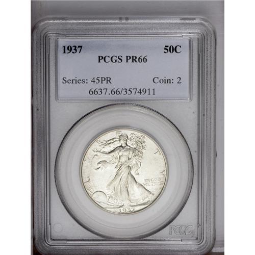 <B>1937<50C> PR66 PCGS.</B></I> This precisely struck cream-gray early proof Walker offers smooth, glassy fields and original eye appeal. The second lowest mintage of the seven-year type.