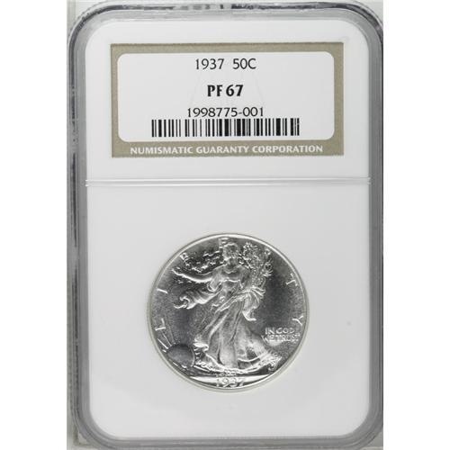 1937 50C PR67 NGC. A brilliant silver-white Superb Gem