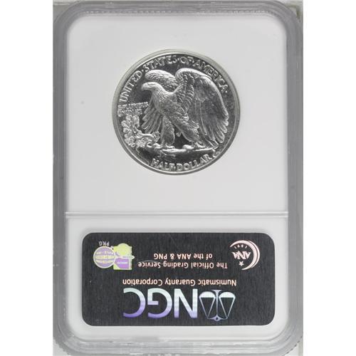 <B>1937<50C> PR67 NGC.</B></I> A brilliant silver-white Superb Gem with few mentionable distractions visible even under a loupe. The bold strike shows a split thumb on Liberty's branch hand, and good detailing on the eagle. Typical for the issue, little contrast is seen between the fields and devices.