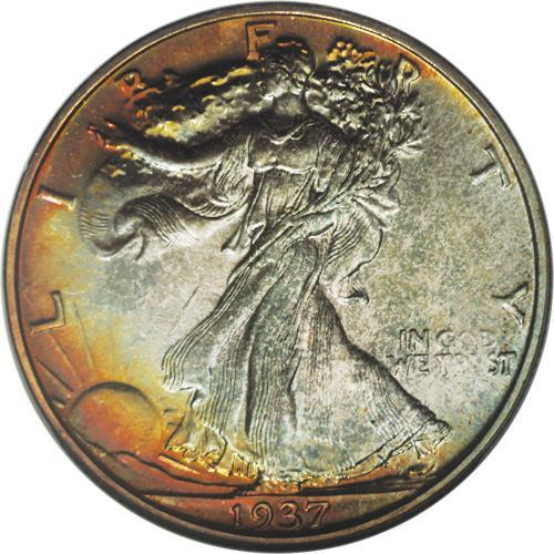 <B>1937 50C PR67 NGC.</B></I> Certain coins have the look of originality, a look that is hard to put into words. This is such a coin. It looks like it was just popped out of a proof set where the cellophane wrapper had broken. The surfaces oxidized (toned) in a unique manner. The center of the obverse shows pale ice-blue toning and the margin has bright russet-golden coloration. The reverse, on the other hand, is sea-green, rose, and magenta. An outstanding, original example of this scarce, second-year issue in the proof series.<BR><BR><b>Shipping:</b> Coins & Currency (<a target="_blank" href="http://www.heritageauctions.com/common/shipping.php">view shipping information</a>)