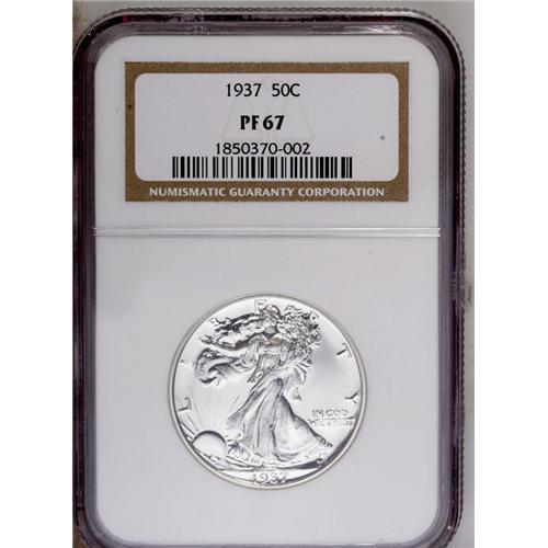 1937 50C PR67 NGC. The liquid, shimmering, silver-blue