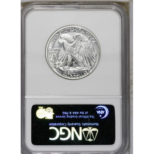 <B>1937<50C> PR67 NGC.</B></I> This is a fully brilliant Superb Gem proof with a hint of cameo contrast, so seldom seen on proof Walking Liberty half dollars. The only blemish found on this coin, a small lint mark below the motto on the obverse, was acquired at the time this piece was struck.