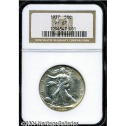 <B>1937<50C> PR67 NGC.</B></I> A popular and somewhat scarcer early proof, this piece is wonderfully preserved under a layer of milky tan-gray patina, and has dazzling, deeply mirrored fields. Population: 145 in 67, 14 finer (7/04). <BR><BR><B>Important notice:</B> Heritage usually auctions material at the rate of 200-250 lots per hour. On some occasions eBay Live bid software or the Internet may not be able to keep up with the pace of the auction. We recommend placing a realistic absentee bid now as insurance to avoid disappointment. Occasionally the auctioneer may eliminate or reject an eBay Live bid, and the auctioneer may also reopen a lot after the close of the eBay live bidding (usually because we missed an audience bid), and may reject your bid even if it shows you as the winning bidder. By bidding via eBay Live, you agree that Heritage may award the lot to another bidder at its sole discretion under the circumstances described above or any other reasonable circumstances. Since eBay bids are not shown to us until we open the lot on the floor, we treat those bids just like floor bids. In most cases the floor responds before the eBay bid is presented to us, due to Internet lag time, so for consistency we have made it a policy that floor bids are always considered first over tie eBay live bids. Also please note that all Heritage lots purchased through eBay Live carry a 20% Buyer's Premium. Please make sure you read the Terms and Conditions before you bid. </span></font></tr></table></td></tr></table>