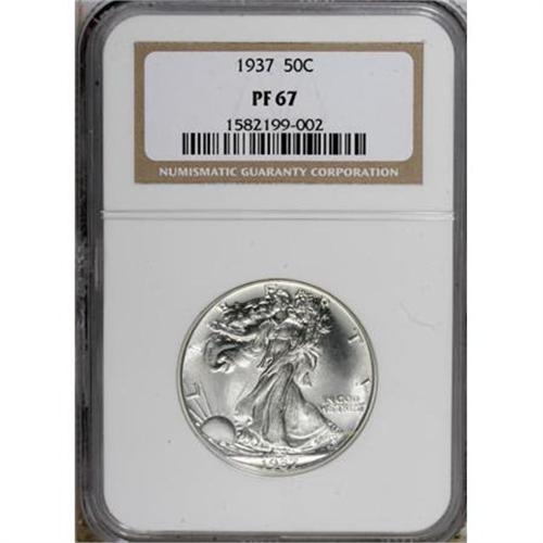 <B>1937 50C PR67 NGC.</B></I> An outstanding example of this early proof Walker issue, strongly defined with untoned and highly reflective surfaces. This specimen's eye appeal is considerably finer than the norm. NGC has certified 17 pieces finer (6/07).<BR><BR><B>Coin Engraver:</B> Adolph A. Weinman<BR><BR><b>Shipping:</b> Coins & Currency (<a target="_blank" href="http://www.heritageauctions.com/common/shipping.php">view shipping information</a>\)
