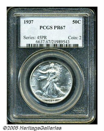 <B>1937<50C> PR67 PCGS.</B></I> Dazzling mint brilliance and deeply reflective proof fields characterize this Superb, nearly flawless early proof Walker.