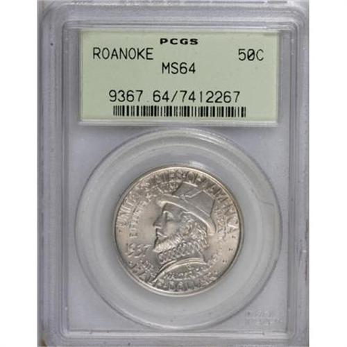 <B>1937 50C Roanoke MS64 PCGS.</B></I> PCGS Population (1569/3200). NGC Census: (649/2382). Mintage: 29,030. Numismedia Wsl. Price for NGC/PCGS coin in MS64: $260. (#9367)<BR><BR><b>Shipping:</b> Coins & Currency (<a target="_blank" href="http://www.heritageauctions.com/common/shipping.php">view shipping information</a>)
