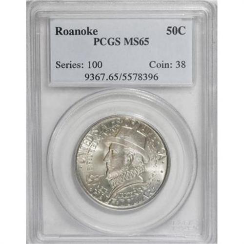 <B>1937 50C Roanoke MS65 PCGS.</B></I> PCGS Population (1930/1236). NGC Census: (1314/1052). Mintage: 29,030. Numismedia Wsl. Price for NGC/PCGS coin in MS65: $300. (#9367)<BR><BR><b>Shipping:</b> Coins & Currency (<a target="_blank" href="http://www.heritageauctions.com/common/shipping.php">view shipping information</a>\)