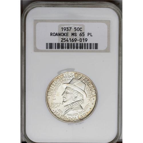 1937 50C Roanoke MS65 Prooflike NGC. Light tan-gold an 1937[50C] Roanoke MS65 Prooflike NGC.