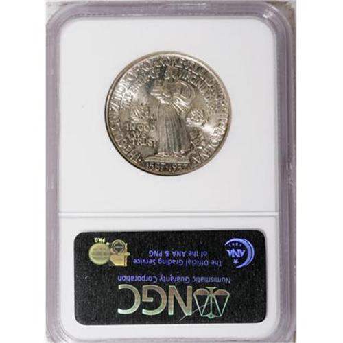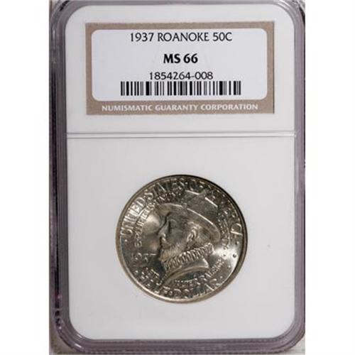 <B>1937 50C Roanoke MS66 NGC.</B></I> NGC Census: (835/217). PCGS Population (994/242). Mintage: 29,030. Numismedia Wsl. Price for NGC/PCGS coin in MS66: $340. (#9367)<BR><I>From The Frank DuVall Collection of U.S. Commemoratives.</B></I><BR><BR><b>Shipping:</b> Coins & Currency (<a target="_blank" href="http://www.heritageauctions.com/common/shipping.php">view shipping information</a>\)