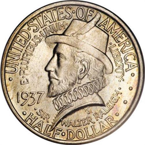 <B>1937 50C Roanoke MS68 NGC.</B></I> A sensational example with frosty silver luster beneath champagne toning, with a dazzling display of rainbow iridescence, especially on the reverse. This is one of the finest existing Roanoke half dollars, tied for the finest that has ever been certified. Census: 24 in 68, 0 finer (1/08).<BR><BR><b>Shipping:</b> Coins & Currency (<a target="_blank" href="http://www.heritageauctions.com/common/shipping.php">view shipping information</a>)