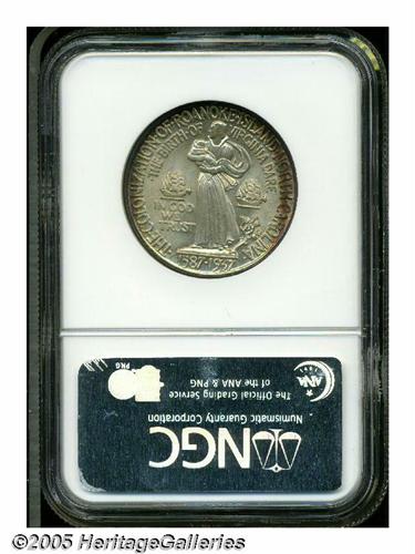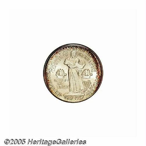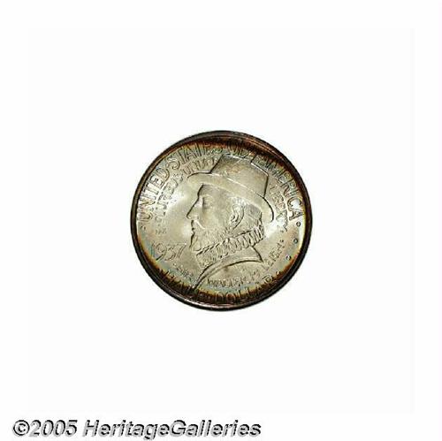 <B>1937<50C> Roanoke MS68 <S NGC.</B></I> Typically well preserved with blushes of champagne-gold patina across the centers and eye catching peripheral crescents of rose, orange, and lime-green iridescence. Population: 5 in 68 <S, 0 finer (6/05).