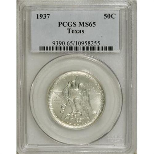 <B>1937 50C Texas MS65 PCGS.</B></I> PCGS Population (584/365). NGC Census: (398/382). Mintage: 6,571. Numismedia Wsl. Price for NGC/PCGS coin in MS65: $292. (#9390)<BR><BR><b>Shipping:</b> Coins & Currency (<a target="_blank" href="http://www.heritageauctions.com/common/shipping.php">view shipping information</a>)