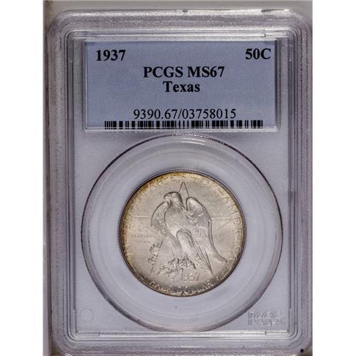 1937 50C Texas MS67 PCGS. Bright rainbow iridescence o 1937[50C] Texas MS67 PCGS.