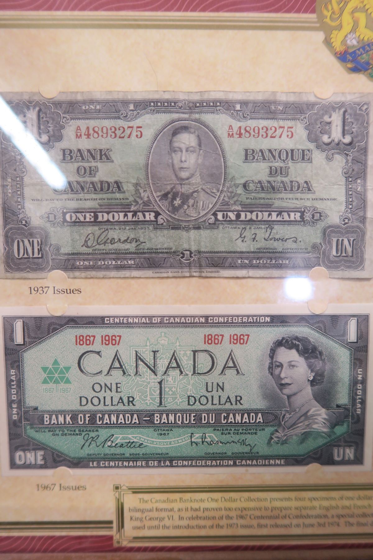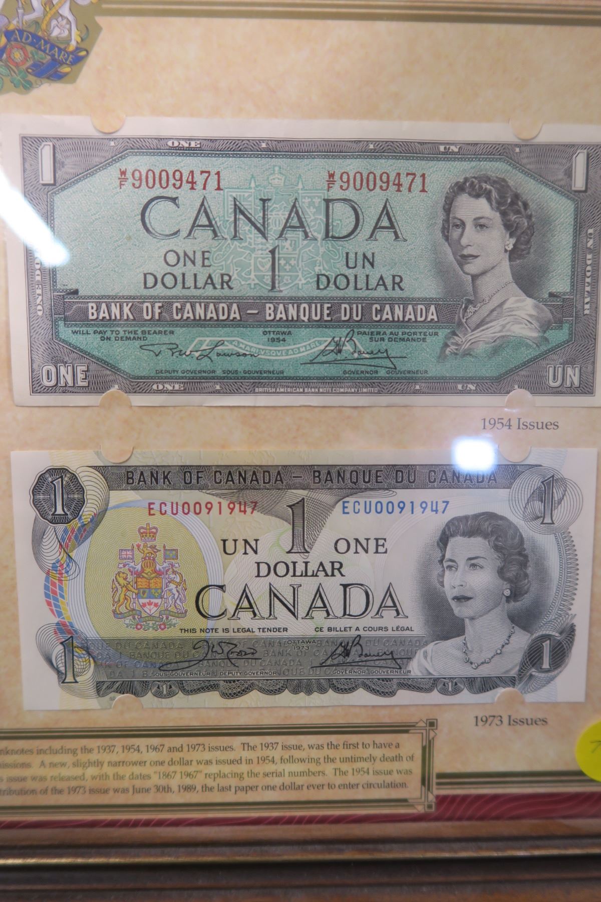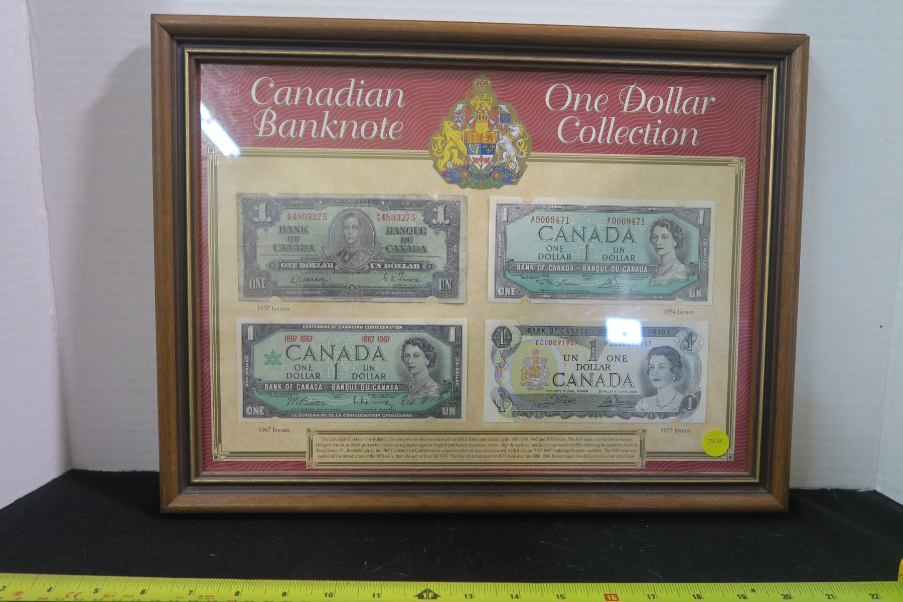 1937, 54, 67, 73 Canadian Bank Note One Dollar Collection Framed 13 X 17