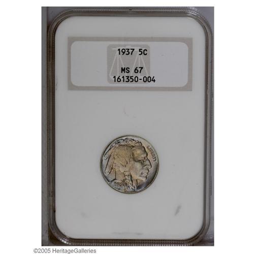 1937 5C MS67 NGC. This pretty Buffalo nickel displays 1937[5C] MS67 NGC.