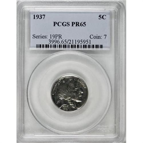 <B>1937 5C PR65 PCGS.</B></I> A gleaming Gem survivor from the last proof Buffalo nickel issue, decisively struck with shining nickel-gray surfaces. Exquisitely detailed with just a touch of haze in the fields.<BR><BR><b>Shipping:</b> Coins & Currency (<a target="_blank" href="http://www.heritageauctions.com/common/shipping.php">view shipping information</a>)