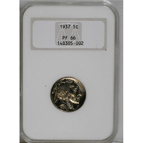 <B>1937<5C> PR66 NGC.</B></I> Pale champagne toning rests on the watery mirrors of this early brilliant proof. Intricately detailed with nearly immaculate fields and devices.<BR><I>From The Carolina Gold Collection, Part Four.</B></I>