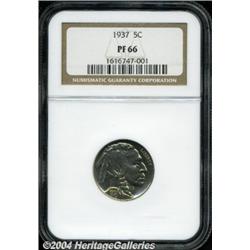 <B>1937<5C> PR66 NGC.</B></I> Fully struck with uncommonly deep mirrors and surfaces that are void of even the tiniest imperfection. A dazzling premium quality Gem proof. <BR><BR><B>Important notice:</B> Heritage usually auctions material at the rate of 200-250 lots per hour. On some occasions eBay Live bid software or the Internet may not be able to keep up with the pace of the auction. We recommend placing a realistic absentee bid now as insurance to avoid disappointment. Occasionally the auctioneer may eliminate or reject an eBay Live bid, and the auctioneer may also reopen a lot after the close of the eBay live bidding (usually because we missed an audience bid), and may reject your bid even if it shows you as the winning bidder. By bidding via eBay Live, you agree that Heritage may award the lot to another bidder at its sole discretion under the circumstances described above or any other reasonable circumstances. Since eBay bids are not shown to us until we open the lot on the floor, we treat those bids just like floor bids. In most cases the floor responds before the eBay bid is presented to us, due to Internet lag time, so for consistency we have made it a policy that floor bids are always considered first over tie eBay live bids. Also please note that all Heritage lots purchased through eBay Live carry a 20% Buyer's Premium. Please make sure you read the Terms and Conditions before you bid.