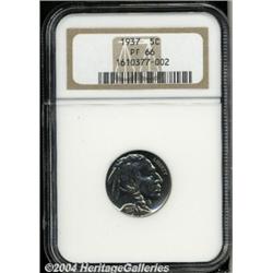 <B>1937<5C> PR66 NGC.</B></I> A brilliant pale gray Gem with wisps of iridescent toning. An outstanding example for your type collection. <BR><BR><B>Important notice:</B> Heritage usually auctions material at the rate of 200-250 lots per hour. On some occasions eBay Live bid software or the Internet may not be able to keep up with the pace of the auction. We recommend placing a realistic absentee bid now as insurance to avoid disappointment. Occasionally the auctioneer may eliminate or reject an eBay Live bid, and the auctioneer may also reopen a lot after the close of the eBay live bidding (usually because we missed an audience bid), and may reject your bid even if it shows you as the winning bidder. By bidding via eBay Live, you agree that Heritage may award the lot to another bidder at its sole discretion under the circumstances described above or any other reasonable circumstances. Since eBay bids are not shown to us until we open the lot on the floor, we treat those bids just like floor bids. In most cases the floor responds before the eBay bid is presented to us, due to Internet lag time, so for consistency we have made it a policy that floor bids are always considered first over tie eBay live bids. Also please note that all Heritage lots purchased through eBay Live carry a 20% Buyer's Premium. Please make sure you read the Terms and Conditions before you bid. </span></font></tr></table></td></tr></table>
