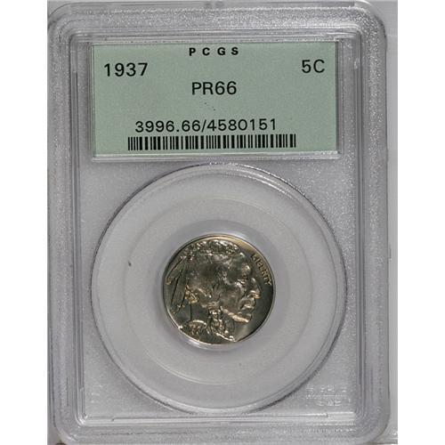 <B>1937<5C> PR66 PCGS.</B></I> A gleaming specimen with pale golden toning over intense mirrors and a wealth of detail on the sharp devices. Housed in a green label holder.<BR><I>From The Carolina Gold Collection, Part Four.</B></I>