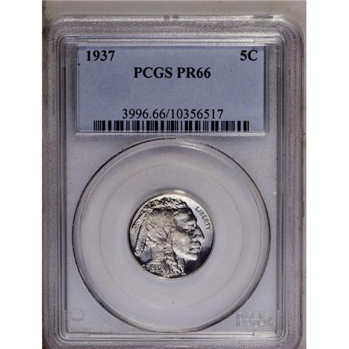 <B>1937<5C> PR66 PCGS.</B></I> Fully struck with deeply watery reflectivity in the fields and pleasing ice-blue coloration. Both sides are free of hairlines and contact marks.