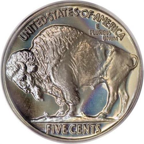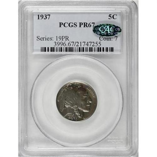 <B>1937 5C PR67 PCGS. CAC.</B></I> Toned with vibrant light blue, red and gold over the entire obverse, the reverse with matching although slightly less intense colors. Solidly struck by the dies and carefully stored since the time of issue. About as nice as this date can be found, with a small handful finer.<BR><I>From The Good Humor Collection.</B></I><BR><BR><b>Shipping:</b> Coins & Currency (<a target="_blank" href="http://www.heritageauctions.com/common/shipping.php">view shipping information</a>)