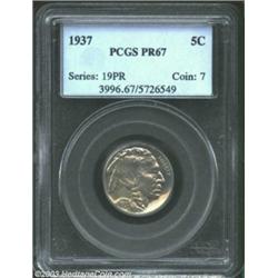1937 5C PR67 PCGS. Pinpoint striking definition characterizes all design elements of this conditiona