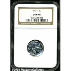 <B>1937<5C> PR67 <S NGC.</B></I> A beautiful chrome-like appearance, the entire coin is snow-white and completely untoned. The fields are like crystal, the design elements more reserved but still flashy. <BR><BR><B>Important notice:</B> Heritage usually auctions material at the rate of 200-250 lots per hour. On some occasions eBay Live bid software or the Internet may not be able to keep up with the pace of the auction. We recommend placing a realistic absentee bid now as insurance to avoid disappointment. Occasionally the auctioneer may eliminate or reject an eBay Live bid, and the auctioneer may also reopen a lot after the close of the eBay live bidding (usually because we missed an audience bid), and may reject your bid even if it shows you as the winning bidder. By bidding via eBay Live, you agree that Heritage may award the lot to another bidder at its sole discretion under the circumstances described above or any other reasonable circumstances. Since eBay bids are not shown to us until we open the lot on the floor, we treat those bids just like floor bids. In most cases the floor responds before the eBay bid is presented to us, due to Internet lag time, so for consistency we have made it a policy that floor bids are always considered first over tie eBay live bids. Also please note that all Heritage lots purchased through eBay Live carry a 20% Buyer's Premium. Please make sure you read the Terms and Conditions before you bid. </span></font></tr></table></td></tr></table>