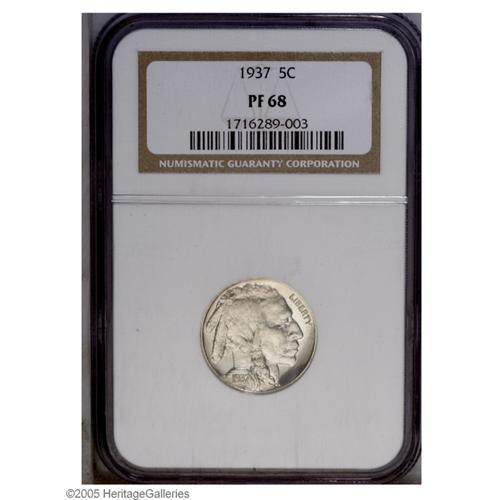 1937 5C PR68 NGC. A glittering, untoned specimen with 1937[5C] PR68 NGC.