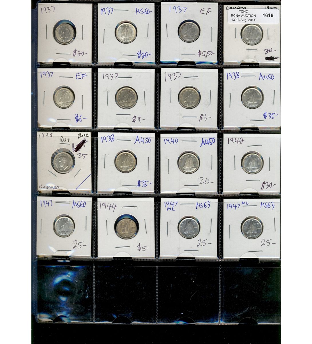 1937(7) 10¢, 1938(3), 1940, 1942, 1943, 1944 & 1947 ML(2). Lot of 16 pcs all EF to AU+.