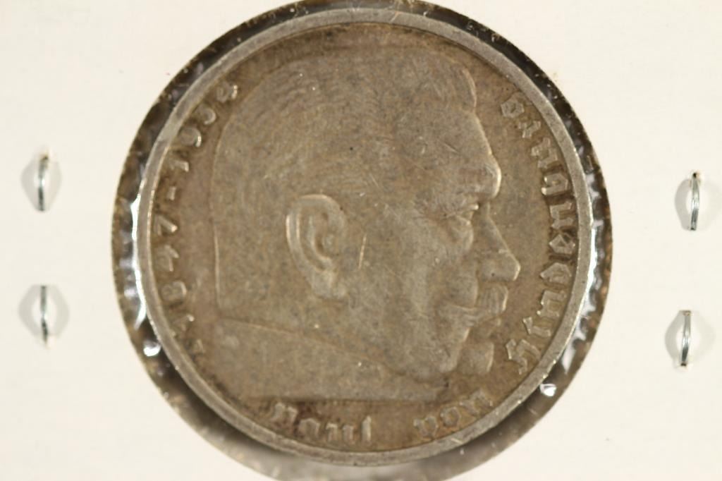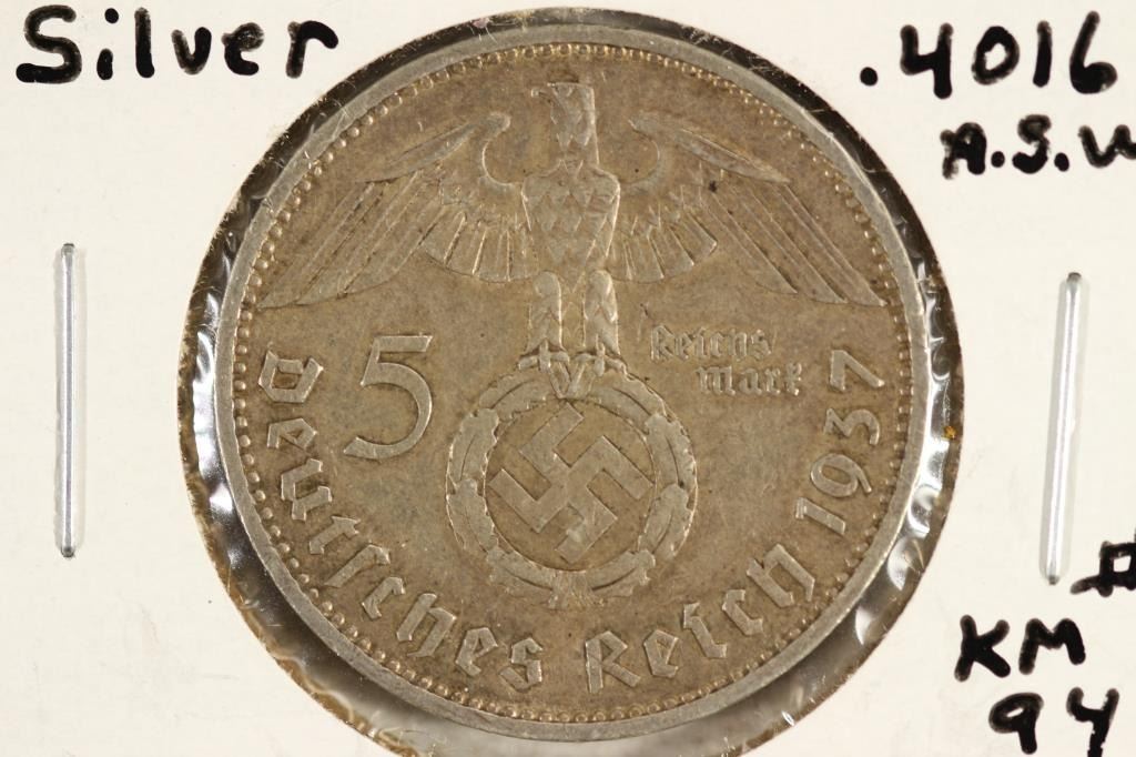1937-A GERMAN SILVER 5 MARKS WITH SWASTIKA
