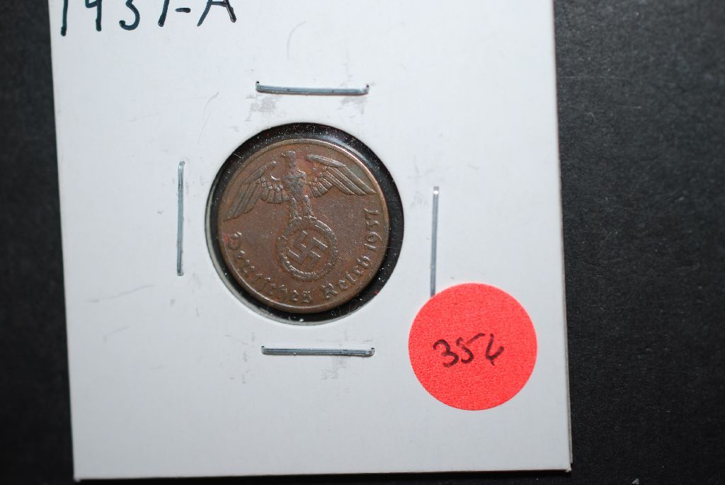 1937-A German 1 Reichspfennig Foreign Coin With Flying Eagle Holding Swatstika; EST. $10-15