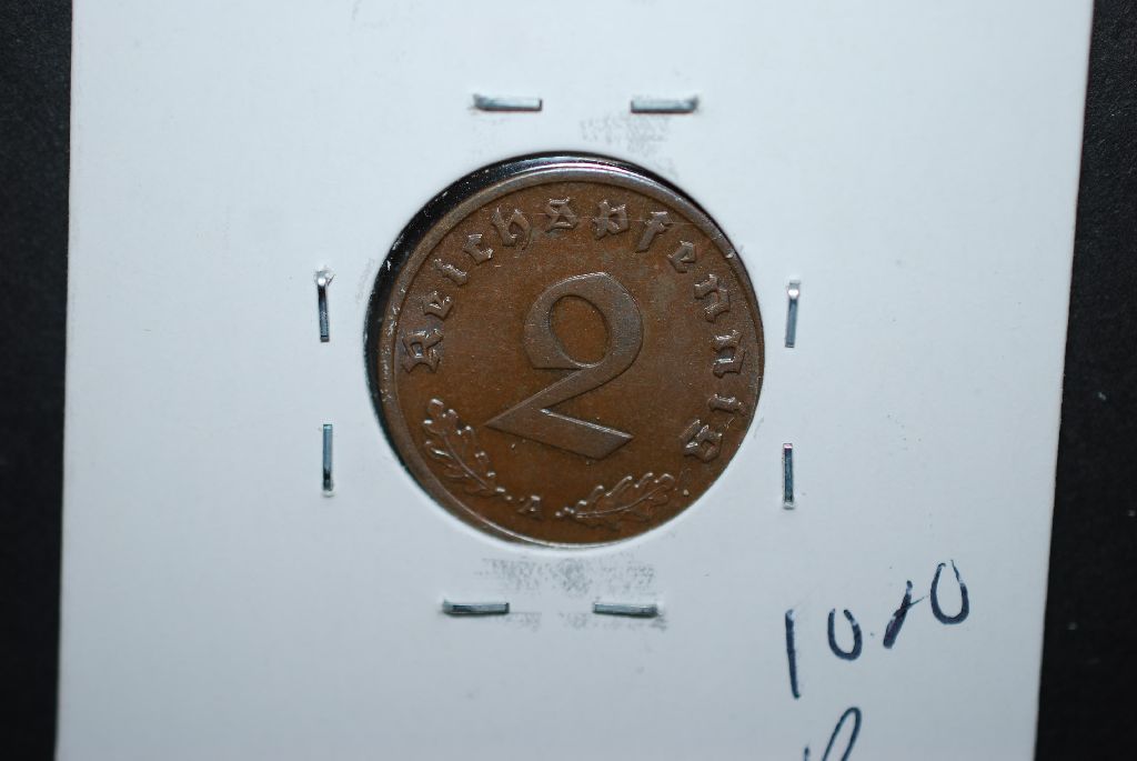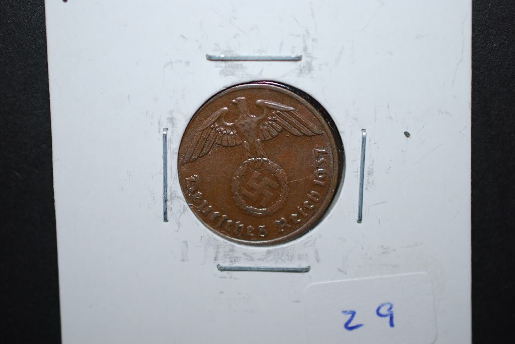 1937-A German 1 Reichspfennig Foreign Coin With Flying Eagle Holding Swatstika; EST. $10-20