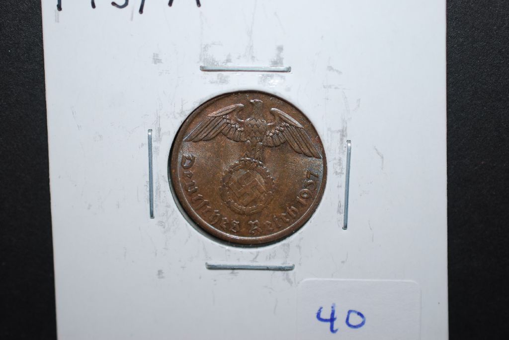 1937-A German 1 Reichspfennig Foreign Coin With Flying Eagle Holding Swatstika; EST. $10-20