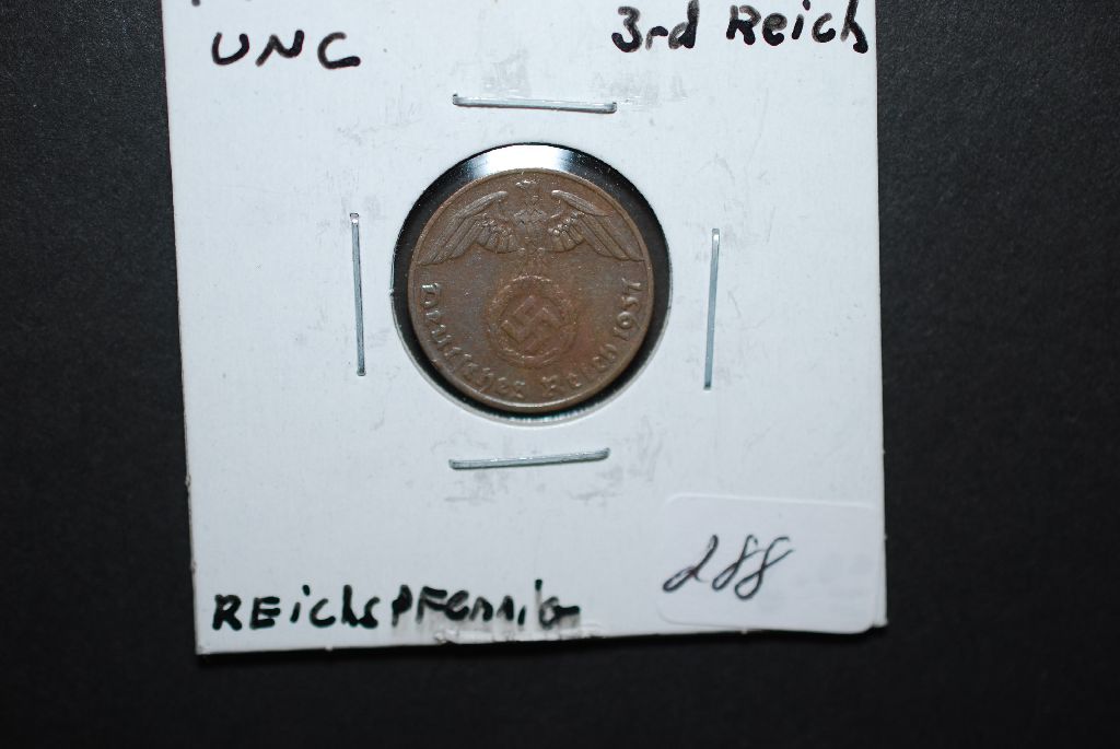 1937-A German 1 Reichspfennig Foreign Coin With Flying Eagle Holding Swatstika; UNC; EST. $10-15