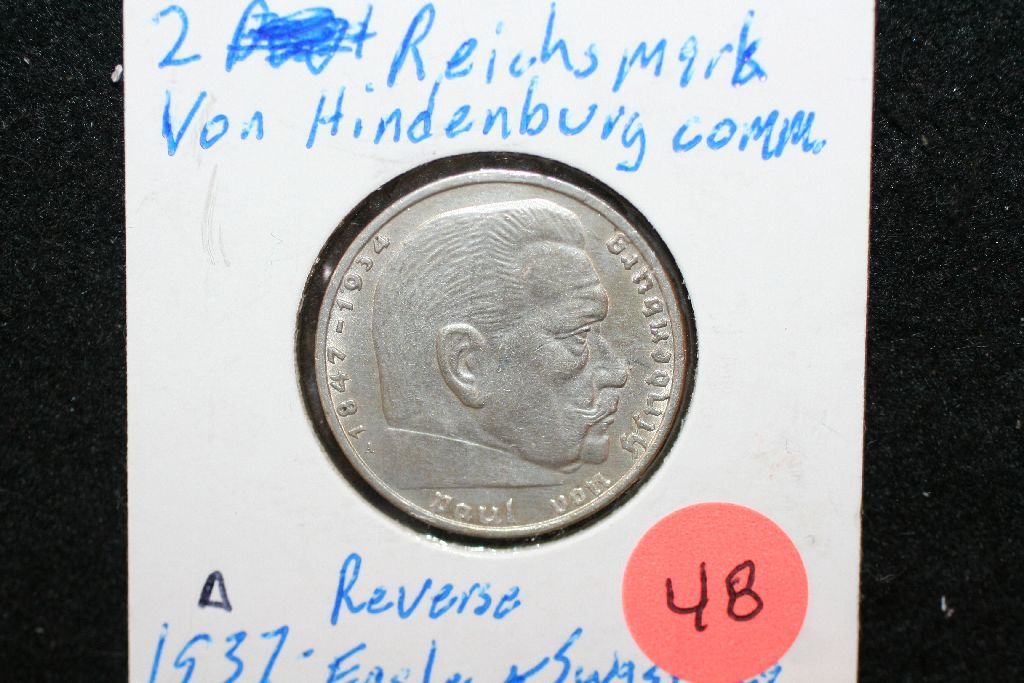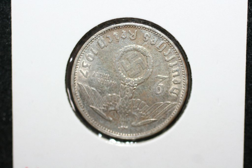 1937-A German 2 Reichsmark Foreign Coin W/Flying Eagle Holding Swatstika