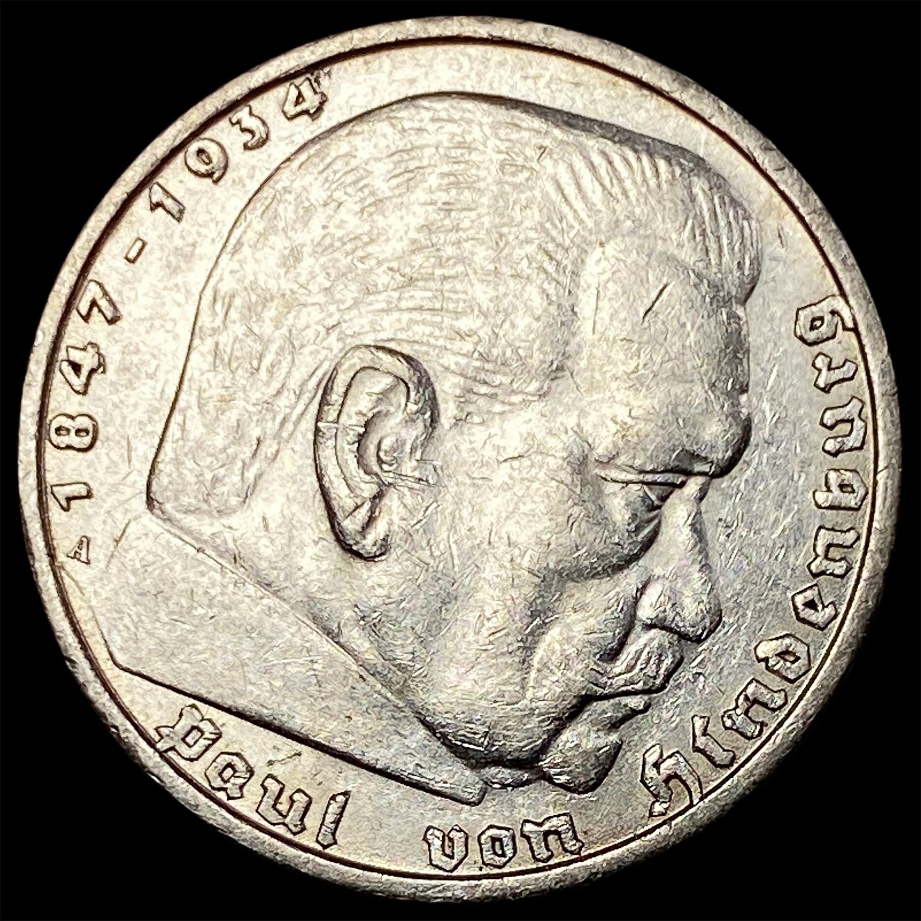 1937-A Germany SIlver 5 Reichsmark CLOSELY UNCIRCULATED