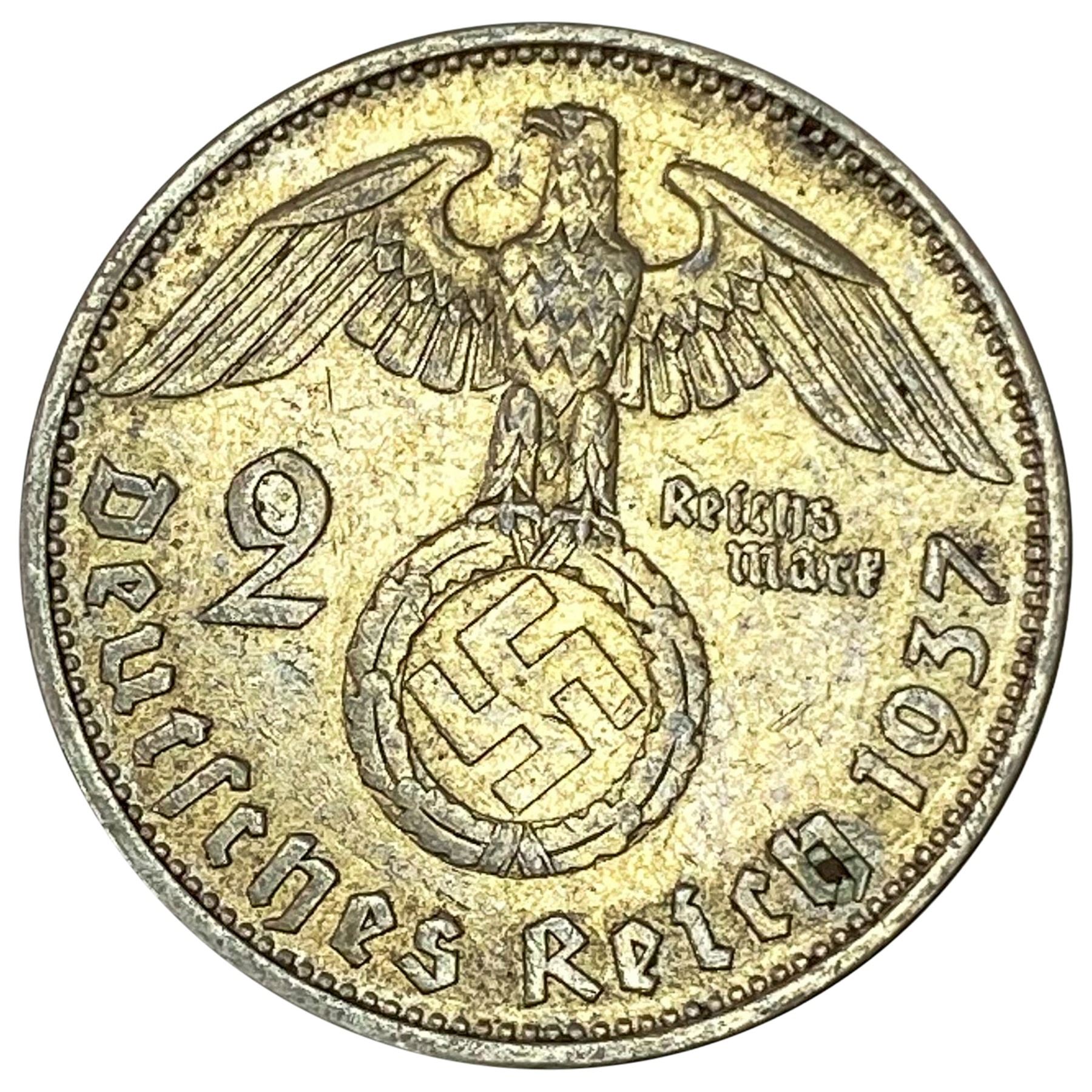 1937-A Germany Silver 2 Reichsmark CLOSELY UNCIRCULATED
