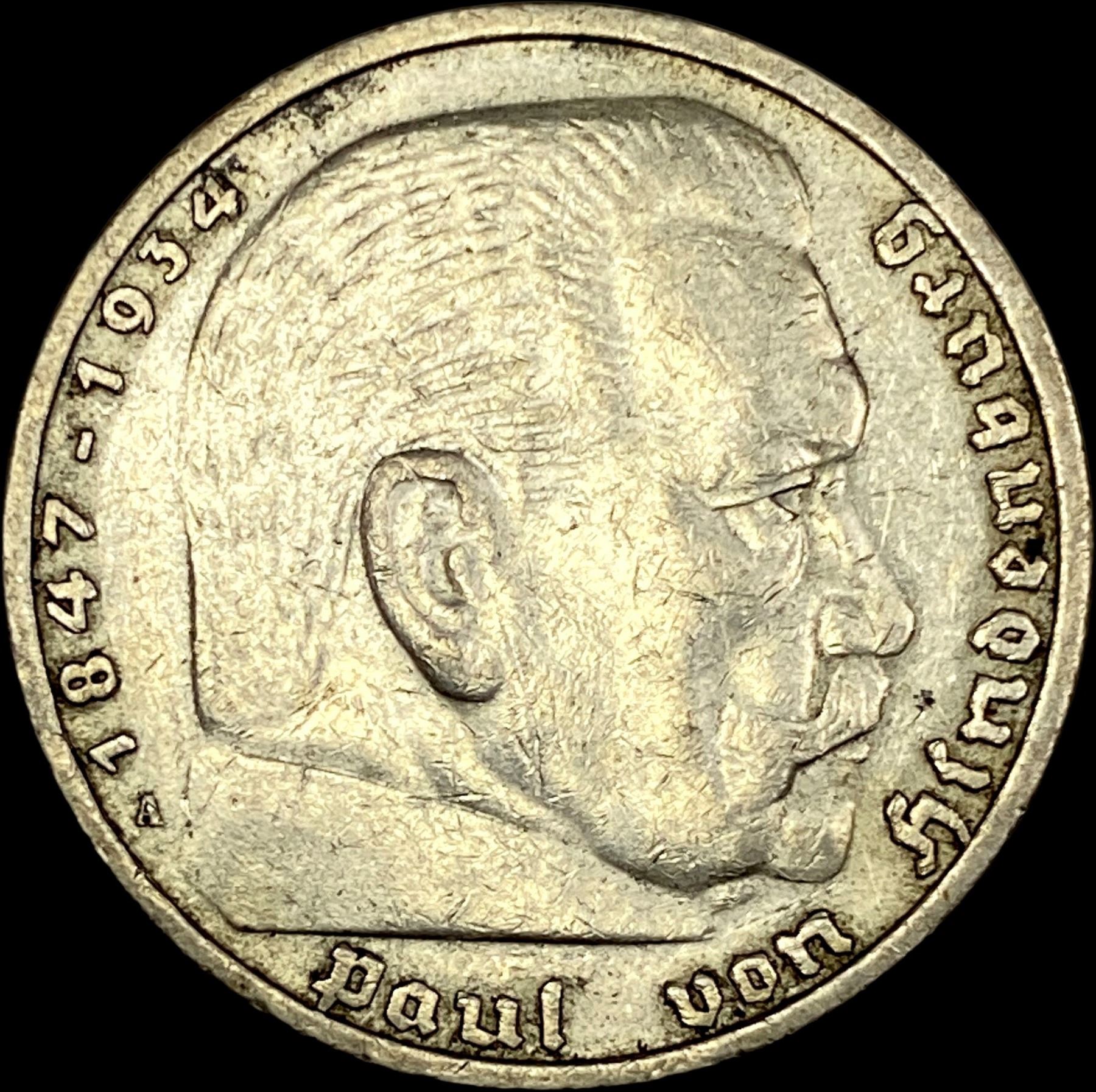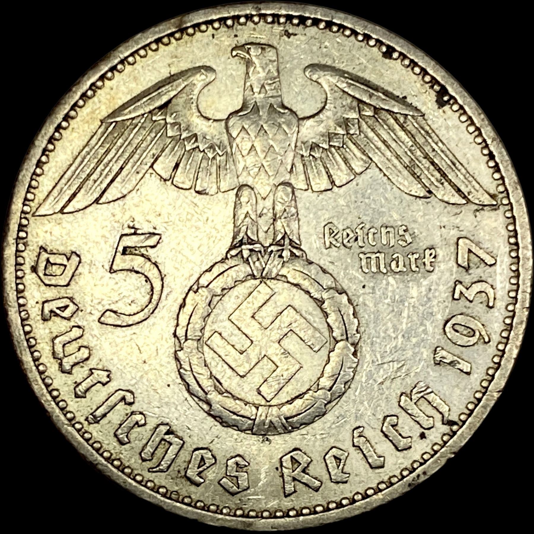 1937-A Germany Silver 5 Reichsmark CLOSELY UNCIRCULATED