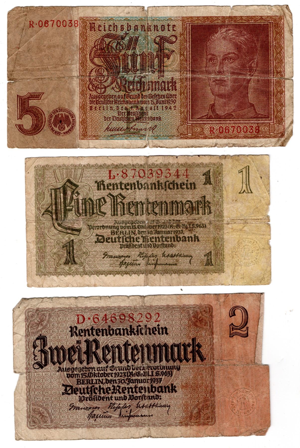 1937 AND 1942 GERMAN BANK NOTES, SWASTIKA ON THE 1942