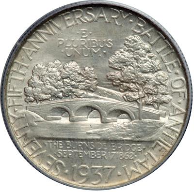 1937 Antietam Half Dollar. PCGS graded MS-66. Nice even light toning rides comfortably atop die-fresh luster on this obviously hand-selected Gem MS66 example (PCGS # 9229) .