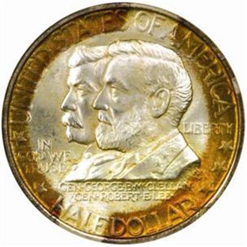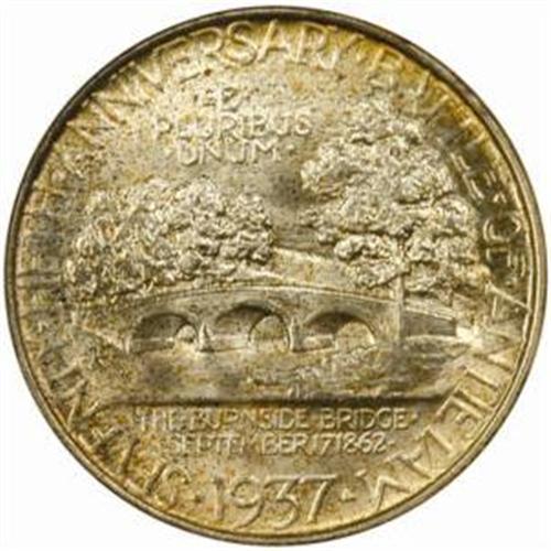 <style type="text/css"> body, td, th { font-family: Arial, Helvetica, sans-serif; font-size: 12px; color: #482424; margin: 0px; padding: 0px; } #header { background-image: url(http://www.bowersandmerena.com/ebay/images/template_v3_01.gif); clear: both; background-color: #590303; border-top-width: 2px; border-top-style: solid; border-top-color: #B38C4F;}#header #header_wrapper { height: 75px; clear: both; width: 800px; margin-right: auto; margin-left: auto; background-image: url(http://www.bowersandmerena.com/ebay/images/template_v3_03.gif); background-repeat: no-repeat; background-position: right; color: #F3EDCC;}#header #header_wrapper #header_logo { float: left; height: 75px; width: 444px; background-image: url(http://www.bowersandmerena.com/ebay/images/template_v3_02.gif); background-repeat: no-repeat; font-size: 10px; text-transform: capitalize; color: #B38C4F;}#header #header_wrapper #header_right { float: left; height: 75px; width: 356px; text-align: right;}#header #header_wrapper #header_right #headerLoginBtn { margin-bottom: 30px;}#header #header_wrapper #header_right input#txtSearch { color: #B49056; border: 1px solid #B49056; width: 175px; padding-top: 3px; padding-right: 3px; padding-bottom: 4px; padding-left: 3px;}#nav { height: 37px; background-image: url(http://www.bowersandmerena.com/ebay/images/template_v3_05.gif); clear: both;}#nav #nav_wrapper { height: 35px; width: 800px; margin-right: auto; margin-left: auto; border-left-width: 1px; border-left-style: solid; border-left-color: #B38C4F;}#nav #nav_wrapper a { padding-right: 15px; padding-left: 15px; border-right-width: 1px; border-right-style: solid; border-right-color: #B38C4F; height: 25px; padding-top: 10px; display: block; float: left; text-decoration: none; font-weight: bold; color: #5D0303;}#nav #nav_wrapper a:hover { color: #B38C4F;}#nav #nav_wrapper #search { float: right; padding-top: 7px;}#nav #nav_wrapper #search #txtSearch { font-family: Arial, Helvetica, sans-serif; font-size: 10px; text-transform: uppercase; color: #D2AE75; border: 1px solid #B38C4F; padding: 3px;}#content_bgd { background-image: url(http://www.bowersandmerena.com/ebay/images/template_v3_09.gif); background-repeat: repeat-y; background-position: center; padding-top: 15px; padding-bottom: 15px; background-color: #FBFBDB;}#content_wrapper { clear: both; height: auto; width: 800px; margin-right: auto; margin-left: auto;}.LotDetailWhite{ line-height:normal; font-size:13px; font-family: arial,helvetica,sans-serif; color: White; font-weight: bold;}.LotDetailInformation{ line-height:normal; font-size: 13px; font-family: arial,helvetica,sans-serif;}.LotDetailMessage{ line-height:normal; font-size: 13px; font-family: arial,helvetica,sans-serif; color: red;}}tr.HeaderAuctionTitle td { color: #000000; font-weight: bold; padding: 2px; background-image: url(http://www.bowersandmerena.com/ebay/images/template_v3_05.gif); background-repeat: repeat-x; border-bottom-width: 1px; border-bottom-style: solid; border-bottom-color: #B38C4F;}table.AuctionSummary a, table.AuctionSummary a:link, table.AuctionSummary a:visited { color: #0000FF; text-decoration: none;}}td.tableHeaderLeft { border-left-width: 1px; border-left-style: solid; border-left-color: #B38C4F;}td.tableHeaderRight { border-right-width: 1px; border-right-style: solid; border-right-color: #B38C4F;}td.tableCellMiddle { border-left-width: 1px; border-left-style: solid; border-left-color: #B38C4F; border-right-width: 1px; border-right-style: solid; border-right-color: #B38C4F; padding: 5px;}tr.footer td { border-top-width: 1px; border-top-style: solid; border-top-color: #B38C4F;}</style></head><body><div id="header"> <div id="header_wrapper"> <div id="header_logo"> </div> <div id="header_right"> </div> </div></div><div id="nav"> <div id="nav_wrapper"> <a href="http://www.bowersandmerena.com">Our eBayLive Auctions</a> <a href="#PaymentInfo">Payment Information</a> <a href="#ShippingInfo">Shipping Information</a> <a href="#About">About Bowers and Merena</a> </div></div><div id="content_bgd"> <div id="content_wrapper"> <table width="100%" border="0" cellpadding="5" cellspacing="0" class="AuctionSummary"> <tbody> <tr class="HeaderAuctionTitle" style="height: 25px;"> <td align="left" class="tableHeaderLeft" > </td> <td align="center" class="tableHeaderRight"> <span style="font-size: large;">Lot #890. 1937 Antietam. MS-67 (NGC).</span> </td> </tr> <tr> <td colspan="3" class="tableCellMiddle"> This satiny Superb Gem exhibits rich olive-copper and steel-lavender tab toning on the obverse. Speckled golden-russet iridescence drifts toward the rim on the reverse. A smooth, vibrant Commem for the collector that values original toning.