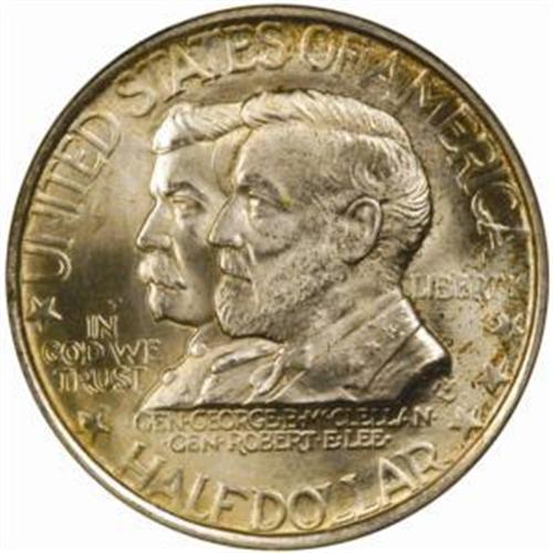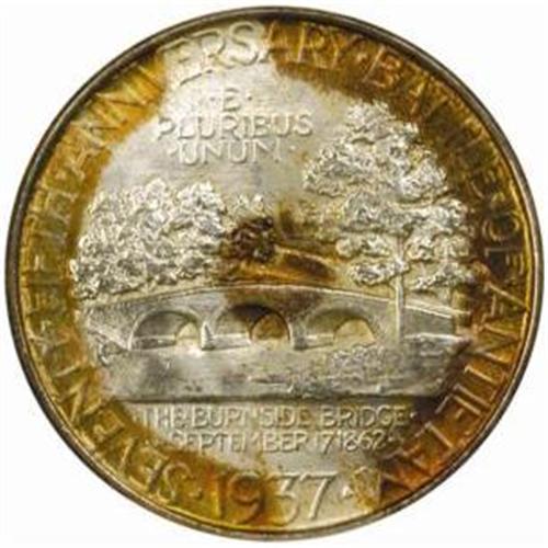 <style type="text/css"> body, td, th { font-family: Arial, Helvetica, sans-serif; font-size: 12px; color: #482424; margin: 0px; padding: 0px; } #header { background-image: url(http://www.bowersandmerena.com/ebay/images/template_v3_01.gif); clear: both; background-color: #590303; border-top-width: 2px; border-top-style: solid; border-top-color: #B38C4F;}#header #header_wrapper { height: 75px; clear: both; width: 800px; margin-right: auto; margin-left: auto; background-image: url(http://www.bowersandmerena.com/ebay/images/template_v3_03.gif); background-repeat: no-repeat; background-position: right; color: #F3EDCC;}#header #header_wrapper #header_logo { float: left; height: 75px; width: 444px; background-image: url(http://www.bowersandmerena.com/ebay/images/template_v3_02.gif); background-repeat: no-repeat; font-size: 10px; text-transform: capitalize; color: #B38C4F;}#header #header_wrapper #header_right { float: left; height: 75px; width: 356px; text-align: right;}#header #header_wrapper #header_right #headerLoginBtn { margin-bottom: 30px;}#header #header_wrapper #header_right input#txtSearch { color: #B49056; border: 1px solid #B49056; width: 175px; padding-top: 3px; padding-right: 3px; padding-bottom: 4px; padding-left: 3px;}#nav { height: 37px; background-image: url(http://www.bowersandmerena.com/ebay/images/template_v3_05.gif); clear: both;}#nav #nav_wrapper { height: 35px; width: 800px; margin-right: auto; margin-left: auto; border-left-width: 1px; border-left-style: solid; border-left-color: #B38C4F;}#nav #nav_wrapper a { padding-right: 15px; padding-left: 15px; border-right-width: 1px; border-right-style: solid; border-right-color: #B38C4F; height: 25px; padding-top: 10px; display: block; float: left; text-decoration: none; font-weight: bold; color: #5D0303;}#nav #nav_wrapper a:hover { color: #B38C4F;}#nav #nav_wrapper #search { float: right; padding-top: 7px;}#nav #nav_wrapper #search #txtSearch { font-family: Arial, Helvetica, sans-serif; font-size: 10px; text-transform: uppercase; color: #D2AE75; border: 1px solid #B38C4F; padding: 3px;}#content_bgd { background-image: url(http://www.bowersandmerena.com/ebay/images/template_v3_09.gif); background-repeat: repeat-y; background-position: center; padding-top: 15px; padding-bottom: 15px; background-color: #FBFBDB;}#content_wrapper { clear: both; height: auto; width: 800px; margin-right: auto; margin-left: auto;}.LotDetailWhite{ line-height:normal; font-size:13px; font-family: arial,helvetica,sans-serif; color: White; font-weight: bold;}.LotDetailInformation{ line-height:normal; font-size: 13px; font-family: arial,helvetica,sans-serif;}.LotDetailMessage{ line-height:normal; font-size: 13px; font-family: arial,helvetica,sans-serif; color: red;}}tr.HeaderAuctionTitle td { color: #000000; font-weight: bold; padding: 2px; background-image: url(http://www.bowersandmerena.com/ebay/images/template_v3_05.gif); background-repeat: repeat-x; border-bottom-width: 1px; border-bottom-style: solid; border-bottom-color: #B38C4F;}table.AuctionSummary a, table.AuctionSummary a:link, table.AuctionSummary a:visited { color: #0000FF; text-decoration: none;}}td.tableHeaderLeft { border-left-width: 1px; border-left-style: solid; border-left-color: #B38C4F;}td.tableHeaderRight { border-right-width: 1px; border-right-style: solid; border-right-color: #B38C4F;}td.tableCellMiddle { border-left-width: 1px; border-left-style: solid; border-left-color: #B38C4F; border-right-width: 1px; border-right-style: solid; border-right-color: #B38C4F; padding: 5px;}tr.footer td { border-top-width: 1px; border-top-style: solid; border-top-color: #B38C4F;}</style></head><body><div id="header"> <div id="header_wrapper"> <div id="header_logo"> </div> <div id="header_right"> </div> </div></div><div id="nav"> <div id="nav_wrapper"> <a href="http://www.bowersandmerena.com">Our eBayLive Auctions</a> <a href="#PaymentInfo">Payment Information</a> <a href="#ShippingInfo">Shipping Information</a> <a href="#About">About Bowers and Merena</a> </div></div><div id="content_bgd"> <div id="content_wrapper"> <table width="100%" border="0" cellpadding="5" cellspacing="0" class="AuctionSummary"> <tbody> <tr class="HeaderAuctionTitle" style="height: 25px;"> <td align="left" class="tableHeaderLeft" > </td> <td align="center" class="tableHeaderRight"> <span style="font-size: large;">Lot #892. 1937 Antietam. MS-67 (NGC).</span> </td> </tr> <tr> <td colspan="3" class="tableCellMiddle"> Whereas the obverse is virtually brilliant, the reverse exhibits rich tab toning in iridescent steel-lavender and olive-orange shades. Both sides are equally smooth with vibrant, satin-to-softly frosted luster.