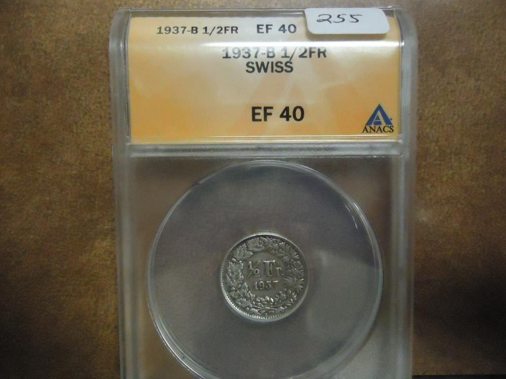 1937-B SWISS SILVER 1/2 FRANC ANACS EXTRA FINE 40